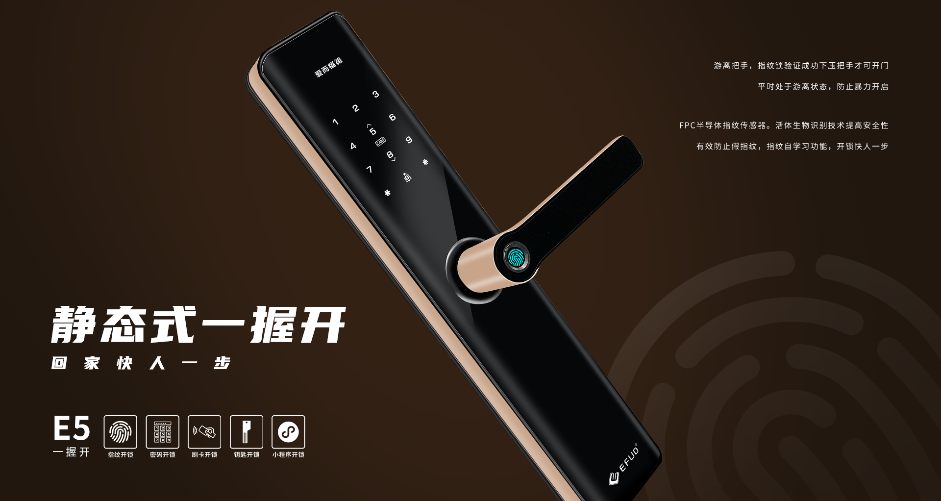 中山市愛而福德電子科技有限公司專注家用智能鎖25年,是一家集產(chǎn)品研發(fā)、制造、銷售、售后于一體全產(chǎn)業(yè)鏈的國家高新技術(shù)企業(yè)。公司擁有現(xiàn)代化生產(chǎn)基地8500平方米,具備35000把/月的生產(chǎn)規(guī)模及一支十多年專業(yè)的研發(fā)團(tuán)隊(duì),產(chǎn)品均擁有100%自主知識(shí)產(chǎn)權(quán)。公司一直秉承“創(chuàng)新智造,工匠精神”,為每一位用戶提供智能、便捷、安全的高品質(zhì)生活!